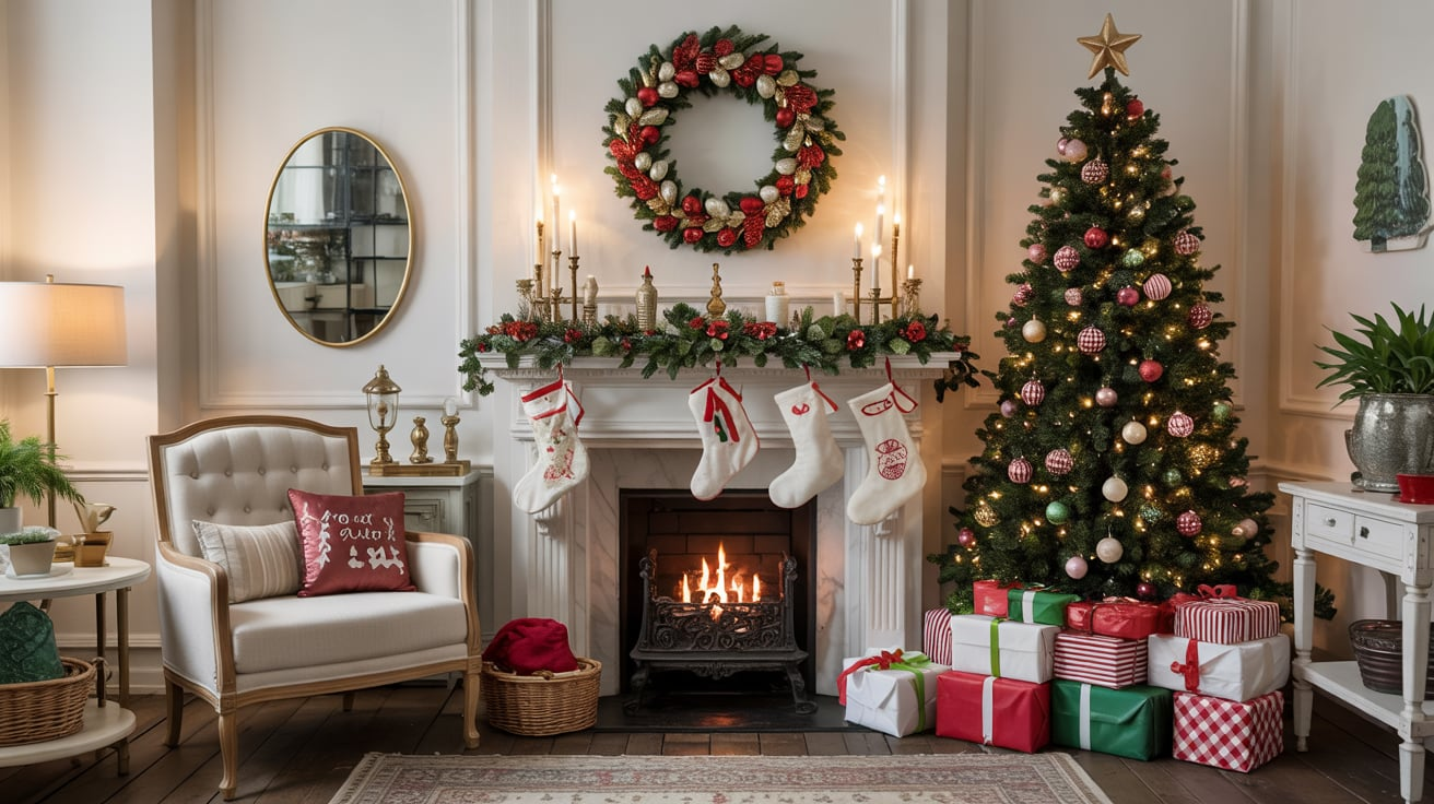 Stockings aren’t just for Santa—they’re part of your décor. Trade in those cartoonish ones for luxury fabrics like linen, velvet, or knit textures. Add name tags or monogrammed initials for a classy, custom touch.